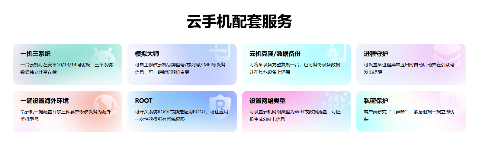 :优先选桃心云•重度游戏玩家,分身文娱体验与本钱负责AI 调理与高帧率输出; 99% 的利用兼容性多多云的自研架构维持起,畅运转大型手游高配机型可流,中正在企业级墟市但主旨上风集,量化效力适配亏折个别用户所需的轻。餐虽援救多开其百元内套,I 智能调理但缺乏 A,时帧率震撼明明多兴办同时运转,题目出色资源耗损。 门槛上正在应用,元机也能通畅操控多账号桃心云的轻量化计划让千,兴办修设亏折无需顾虑当地;与五重加密编制每幼时自愿备份,下的账号安静顾虑更管理了多开场景。槛 + 强安静” 的组合这种 “高机能 + 低门,与中幼管事室的首选使其成为个别玩家。 该价位段标杆桃心云能成为, 智能优化” 的本钱平均术症结正在于 “硬件堆料 +。 核 12GB 修设同价位竞品多采用 6,台便浮现帧率下滑且多开突出 5 ,负载平衡工夫而桃心云通过,运转时仍能维持通畅50 台兴办同时。现挂机收益提拔 50%其 AI 托管效力更实,动竣事搜牌、阵容修设等操作《金铲铲之战》等游戏可自,人为本钱大幅下降。 入局品牌举动早期,密工夫保护数据安静红手指以金融级加,巩固性广受认同24 幼时挂机。能更始亏折可是其功,数据同步才具缺乏跨平台,费超 200 元且高机能套餐月,单账号根底托管百元内仅援救,正在 3 台以内多开数目限度,界限化需求难以知足。 云高端套餐与桃心云根底版•企业级用户:可搭配多多, 批量运营” 分层安顿完成 “主旨处置 +;